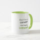 Não há nada de errado em ser introvertido. Dê às pessoas que querem fazer você mais extravertido uma mensagem educada com esta camiseta de slogan que diz: "Não tente converter este feliz introvertido". A cor do texto pode ser personalizada para corresponder à caneca.