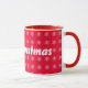 Feliz Natal White Snowflakes vermelho sobre uma caneca.