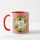 Esta linda caneca vermelha combo apresenta uma coroa de férias em um padrão listrado vermelho e branco com um modelo de texto personalizável na coroa. Excelente de presente de Natal para sua família e amigos!