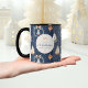 Celebre a temporada em estilo com esta elegante caneca de "Feliz Natal". Apresentando um design festivo de aquarelas de velas, presentes, estrelas e arcos sobre um fundo de marinho, é perfeito para manhãs de feriados, reuniões familiares ou celebrações de escritórios. Personalize com seu nome de ano ou família para um toque festivo único.