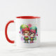 Bonita caneca de Natal personalizada para Mimi. O texto pode ser personalizado. Doce garotinho e elfos miúdos num estilo aquarela.