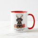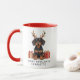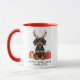 Feliz Howlidays Dachshund Personalizado Café de Natal Mug apresenta um bonito cão de dança vestindo galhadas com presentes de Natal e o texto "Feliz Howlidays (nome)" na tipografia moderna. Perfeito para o Natal e feriados como presentes para familiares e amigos, amantes de cães, mães de cães, pais de cães, babás e muito mais. Personalize editando o texto na caixa de texto fornecida. Criado pelo Evco Studio www.zazzle.com/store/evcostudio