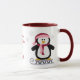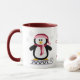 Esta caneca fofa apresenta um adorável pinguim de trenó e seu próprio texto personalizado. O pinguim está vestido com um cachecol vermelho e rosa de Férias e chapéu, e está se movendo em um trenó. Alguns flocos de neve caem. A imagem é repetida duas vezes, com três campos de texto para o texto personalizado entre eles. Perfeito para crianças grandes e pequenas durante a época de Natal!