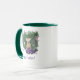 Esta Páscoa colorida Cartões de natal caneca de café apresenta uma deliciosa composição colorida de um belo coelho em flores roxas com a saudação "Felz pascoa!"