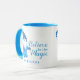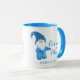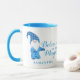 Digite seu nome para personalizar esta caneca de Natal branca e azul que apresenta o ditado Acredite no Mágico e um gnomo alegre. O modelo facilita criar um presente único para as férias de inverno.