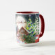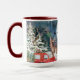 Papais noeis de Natal Red Truck Feriados Russos de Inverno Mug apresenta um design de inverno rústico com um caminhão vermelho, boneco de neve, rena, cabana, árvore de Natal e Papais noeis. Projetado por feriados do Evco www.zazzle.com/store/evcoholidays