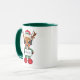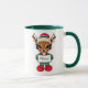 Engraçado com pijama de Natal e pantufas com um sinal de nome personalizado. Feriado de Natal.