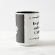 Uma caneca de café com um design que diz: "Fique Calmo e Faça Café". Esta design foi criada por Debbie Quick, de Designs Criativos Debs. www.debscreativedesigns.com