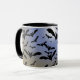 Caneca clássica de café e chá, recipiente para beber impresso com uma ilustração desenhada à mão "Fiquei Louco por Morcegos Pretos e Luar Bonito" por TheFabricSeal, loja de impressão sob demanda na Zazzle.com #ZazzleMade . https://www.zazzle.com/store/thefabricseal