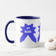 Prêmio as suas mamães três fitas azuis neste Dia de as mães com uma caneca com apenas isso. As fitas dizem o número 1 da mãe em letras brancas. Só o que é para uma mãe especial que faz todos os sacrifícios que ela tem por ti. Excelente de aniversário e qualquer ocasião em que queira honrar sua mãe. Design da tia Calçado.