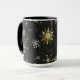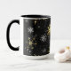 Fundo de Natal preto com flocos de neve de joias douradas e pretas. Flocos de neve ouro. Natal.
