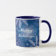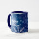 Branco e marinho 11 oz. combo caneca com uma imagem de flocos de neve em azul escuro e um sentimento de feriado Opcional. Ver pote de doces correspondente, placa de papel, azulejo e portas copos de cerâmica quadrada. Veja toda a coleção Chanucah Mug na categoria HOME na seção HOLIDAYS.