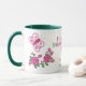Esta é uma caneca de Dia de as mães bonita e bonito para uma criança para dar à mamãe. Dois lados da caneca têm uma imagem brilhante rosa, verde e branca de flor e borboleta. No meio estão bonito letras florais verdes e cor-de-rosa que dizem Happy Dia de as mães, com seu texto personalizado em verde. Atualmente diz "às melhores Mamães do mundo!", mas você pode personalizá-lo facilmente ou fazê-lo dizer o que quiser.
