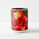 A imagem nesta Mug é uma fotografia original de ZoeSPEAK de uma flor de hibisco vermelha. Na foto, o centro da floração é assoprado por uma luz solar muito brilhante espiando uma abertura entre as folhas verdes amarelas do mato. O estame amarelo é cercado pelas pétalas vermelhas brilhantes da flor, que parecem amarelas onde o sol é mais brilhante. O resto da flor cai nas sombras em cor vermelha profunda contra as folhas verdes de azeitona. Há um texto branco lendo "Bom dia, mãe!" na parte inferior da foto. Esta opção está definida para você personalizar ou excluir se preferir. Um presente de excelente para a mãe, em qualquer dia do ano.