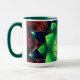 Mostra uma flor virtual verde com folha de ciano escuro surreal e algumas sombras que simulam alguma percepção de sombra, sobre a base de coral avermelhado áspero.