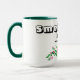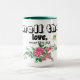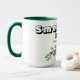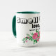 Esta caneca encantadora apresenta uma abelha floral, duas delicadas, e a frase "Cheire o amor, vista a alegria" em preto.