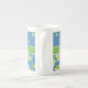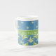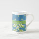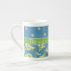 Uma caneca de café chique de China de osso a personalizar, com padrões do mix'n'match Lírio-- do vale em um fundo azul; "para o amor da coleção fino & Painterly dos lírios".