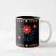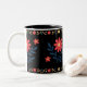 Uma caneca de dois tons impressionante com uma base preta com padrões florais vermelhos e azuis vibrantes, perfeita para apreciar suas bebidas favoritas em estilo. Ideal para uso diário ou como presente pensativo!