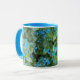 Aproveite a sua bebida favorita, quente ou fria, nesta caneca de café colorida que apresenta uma foto de enrolamento das flores azuis e folhas variegadas da planta Brunnera Jack Frost. Selecione o estilo e a cor da caneca. Um design floral divertido!