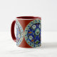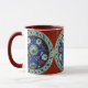 O tom de decoração dessa caneca de café é derivado de cerâmicas turcas feitas na cidade de Iznik, no oeste da Anatólia, entre os séculos XV e XVII. O Mosaico Turco do Tribal Iznik.