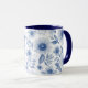Uma bonito caneca de girassol azul. Design apresenta um padrão uniforme de aquarela floral pastel azul girassol sobre fundo branco.