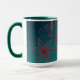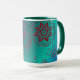 Esta caneca azul e verde com cerceta acentua características que um desenho original baseou no design do mehndi do henna. Verde escuro ao fundo do aqua com um teste padrão floral no vermelho marrom faz uma manhã colorida de alerta.