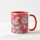 CANECA FLORAL VERMELHO AZUL BRANCO TULIPAS, FOLHAS FLORES