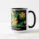 Um design floral brilhante que inclui as cabeças de flores amarelas margaridas e as folhas verdes, arranjadas em forma de padrão.