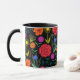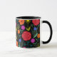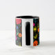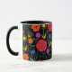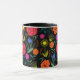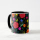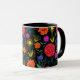 Estas flores em estilo de história em quadrinhos de cores vibrantes realmente se destacam contra o fundo preto profundo no mais novo design de porta-copos original de Leslie Sigal Javorek.