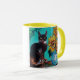 CANECA FLORES COM GATO PRETO EM TURQUOISMO AZUL