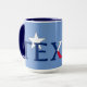 Design de caneca única com a bandeira do Texas cores contra fundo azul, com destaque para Bluebonnets. A flor de Bluebonnet é a flor do estado do Texas. Em março e abril, estas lindas flores florescem em campos e meios de comunicação nas autoestradas.