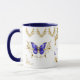 Caneca Flores modernas, borboletas azuis e douradas, mono