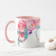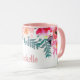 Caneca personalizada com nome ou monograma elegante floral Rosa Menina e Rosa Pêssego. Características, rosas em pastel de cor rosa claro e pêssego em aquarela com moldura botânica floral com folhagem acima em fundo branco. Você pode personalizar com seu nome ou monograma com uma bela caligrafia elegante e negrito manuscrita. Esta caneca feminina é o presente perfeito para ela em aniversário, chá de noiva, casamento, feriado, Natal ou qualquer ocasião. Se precisar de ajuda ou itens combinando, por favor contate o designer.
