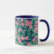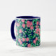 Caneca Flores rosa, fundo azul escuro