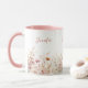 Personalize e adicione seu nome (3) escrito com um script de estilo com letra de tendência. Encantador Design de Prados de Flores Selvagens, com uma delicada ilustração aquosa de um prado de flores silvestres, adornada com flores cor-de-rosa, canudos beges e e grama. Esta cena pitoresca sobre um fundo branco intocado adiciona um toque de beleza natural e tranquilidade à sua cozinha.