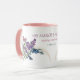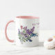 "Seus Compaixões são novos todas as manhãs", diz a lavanda e o texto cor-de-rosa no centro desta caneca cristã. Em ambos os lados do texto estão bonito imagens de flor-da-água em tons de roxo, azul, lavanda, verde e rosa. As correntes de dourado falso por detrás das imagens das flores aumentam o interesse. Bonito!