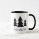 Traga um toque brilhante e moderno às suas férias com esta design de inspiração escandinava. Apresenta três pinheiros negros e brancos e as palavras "Feliz Natal" em caracteres pretos impressos à mão. O design aparece em ambos os lados da caneca.