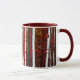 Uma floresta de pássaros escuros realçada com vermelho e ouro.