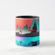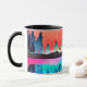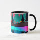 Ilustração de cervo em uma floresta de montanha nas cores da aurora borealis sob estrelas da noite.
