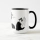 Esta caneca é decorada com desenhos de tinta que fiz do meu gato preto e branco, Pierrette.