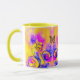 Design vibrante, elegante e artístico. Uma borboleta cintilante colorida com uma flor mágica, flores estilizadas e floridas em Primavera. Pintura aquosa com papel dourado e folha prateada em cores azuis roxas amarelas.. É também um belo presente para o natal, ocasiões especiais, aniversários, casamento e Dia de os namorados.