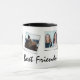 Caneca fofa com 4 fotos de sua escolha e o texto 'Melhores Amigos' com dois pequenos corações pretos. Seria um ótimo presente para uma melhor amiga, madrinha, irmã, casais, crianças, avó, etc. Super fácil de personalizar.