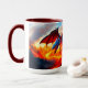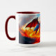 Um dragão voa pelo céu reinando fogo através da paisagem e da vila.