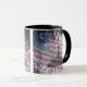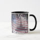 Aproveite suas bebidas quentes nesta caneca patriótica exibindo a bandeira original de 13 estrelas e o Independence Hall sobre um fundo de fogos de artifício.