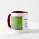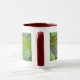 Uma bela folha verde com texto: "Tenha um bom dia". A xícara está disponível em estilos e cores diferentes. .