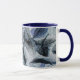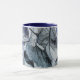Winter Fallen Leaves in Blue & Cinza Mug - Esta design de caneca única apresenta uma surpreendente criação de foto-arte de folhas caídas e congeladas, transformada em uma obra de arte impressionante. A fotografia original foi digitalmente aprimorada para enfatizar a beleza serena do frio do inverno, com uma paleta suave de blues e cinzentos. Perfeito para os entusiastas da natureza e para aqueles que apreciam a beleza silenciosa da estação.