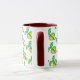 O verde sae com os destaques avermelhados, é multiplicado através da caneca. A haste avermelhada apoia 3 d que olham a folha nas máscaras do verde.