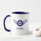 Esta caneca E-2 Airman Rank Air Force apresenta um logotipo com nome personalizado.