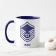 Esta caneca E-7 Master Sargento Rank apresenta um logotipo com nome personalizado.