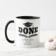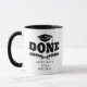 Uma caneca de café de graduação personalizada e bonita, com boné formando, ramificações, nome próprio do aluno e a palavra "FEITO" em ousada tipografia moderna. Adicione os detalhes do formando clicando no botão "Personalizar" acima com o ano em que se graduaram